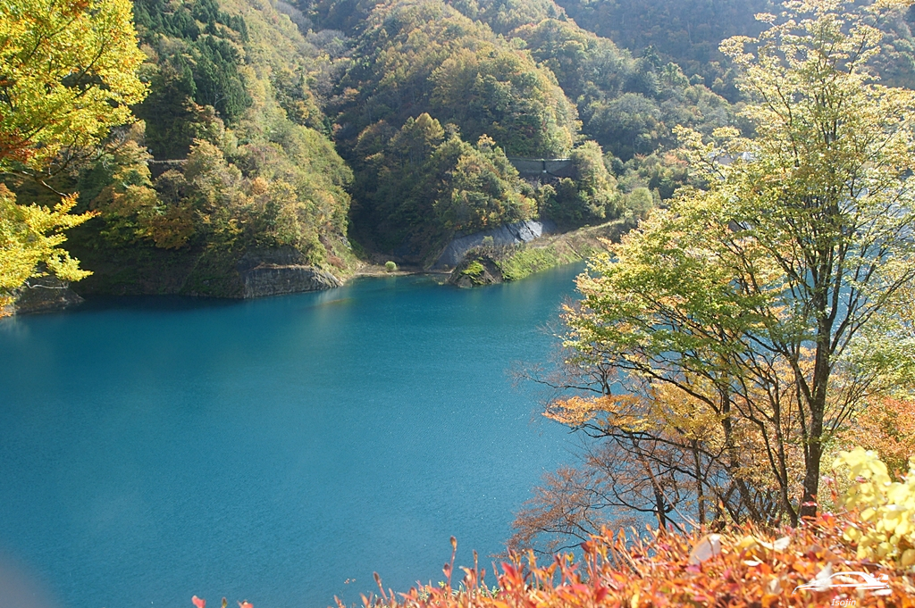 奥四万湖の周遊道路に戻って、2本目の橋の上から、パチリ♪