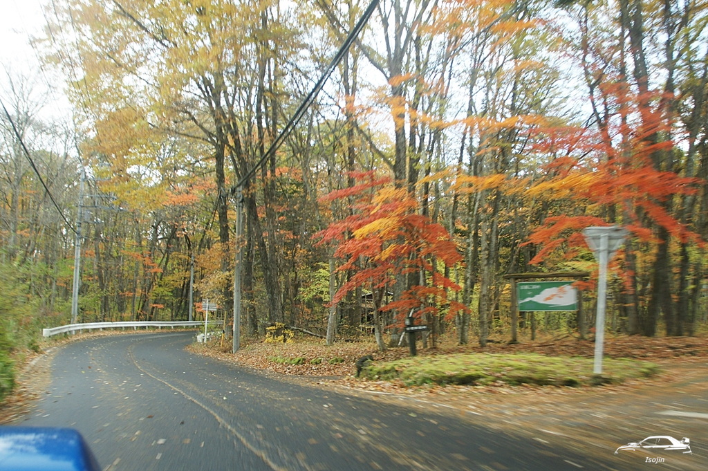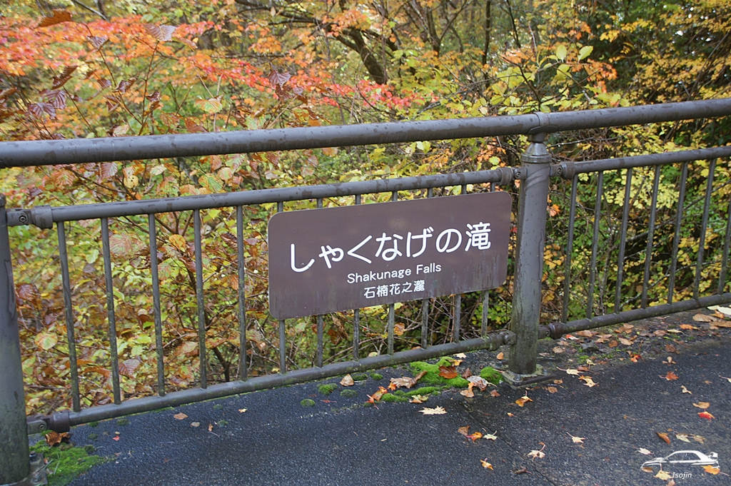 周遊路の二つ目の橋の手前を左へ入り、少し進むとしゃくなげ滝の駐車場があります。