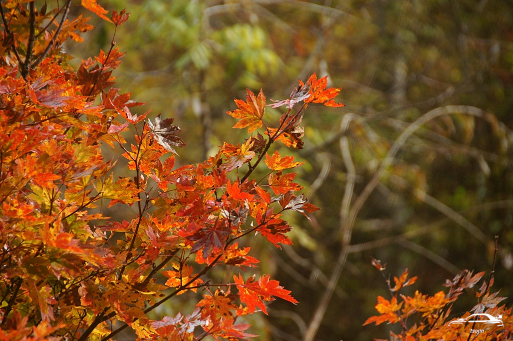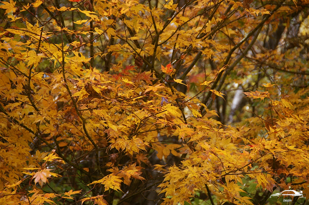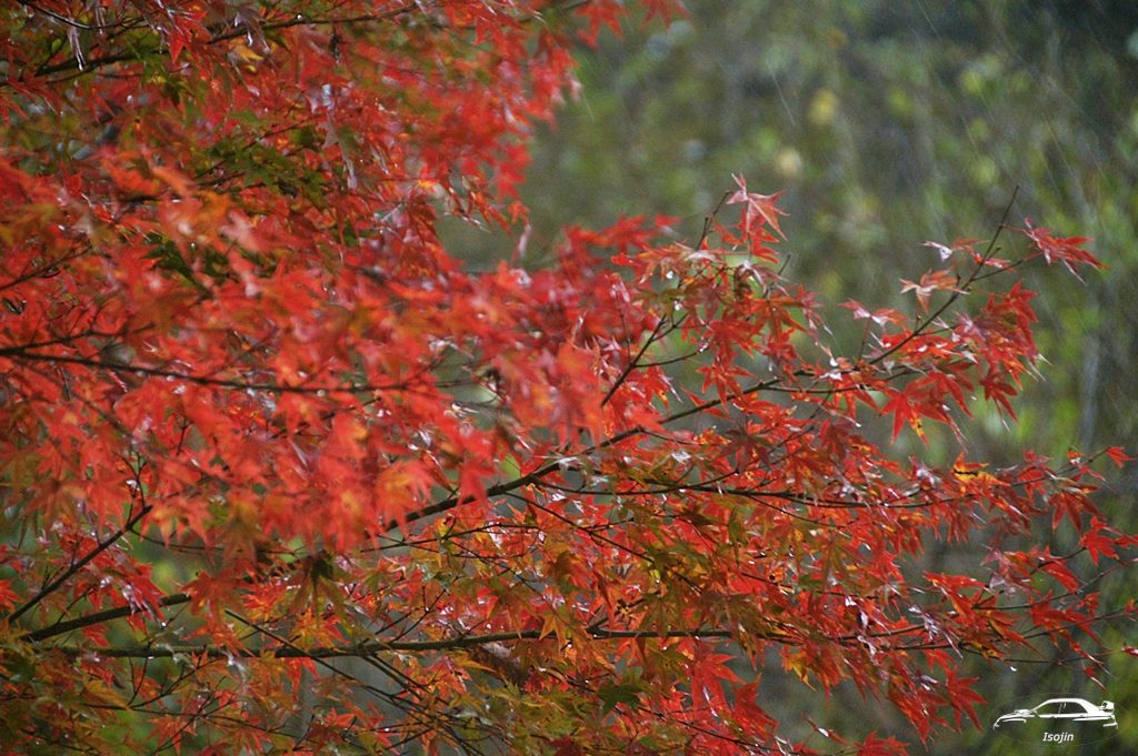 丁度、陽がさして来て、見上げると山が燃えているような鮮やかな紅葉。