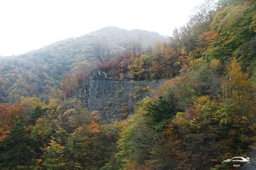 国道353号を四万川ダム、奥四万湖方面へと向うが、雨が降ってきてしまった。