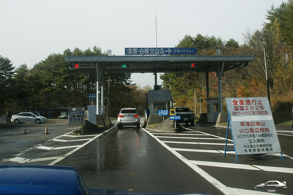 料金所のおじさんによると、上の方は積雪しているため、ノーマルタイヤは通行止め。との事。