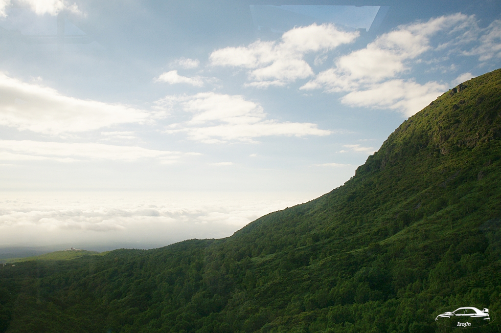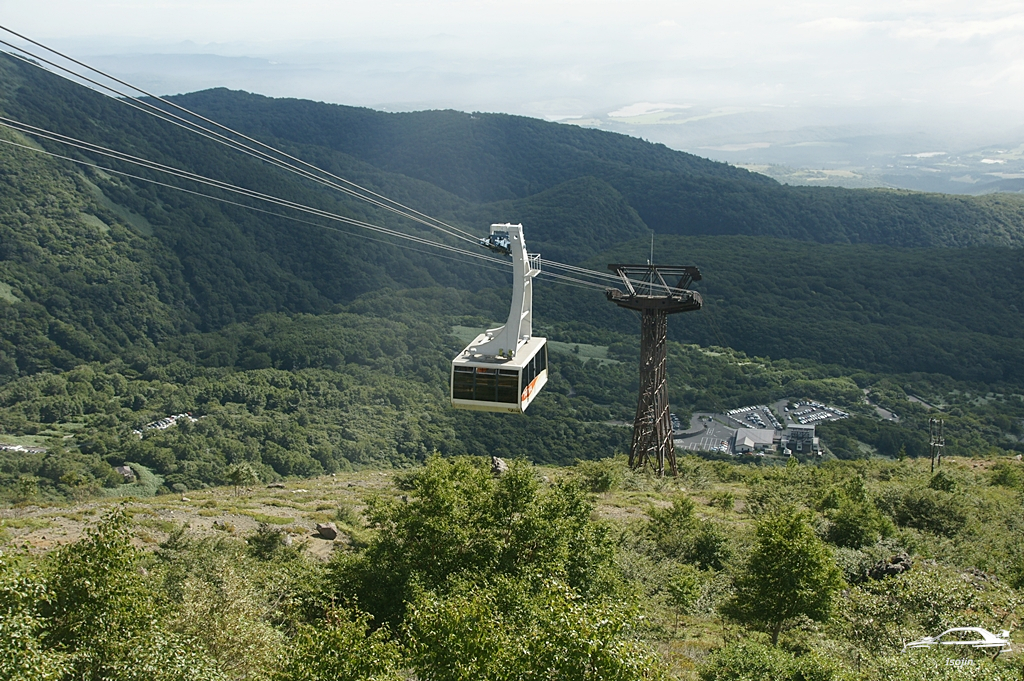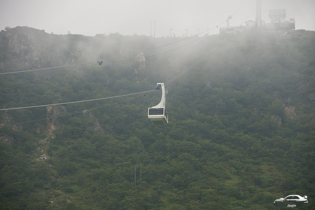 ロープウェイの山頂駅付近にもガスが掛かっていますね。