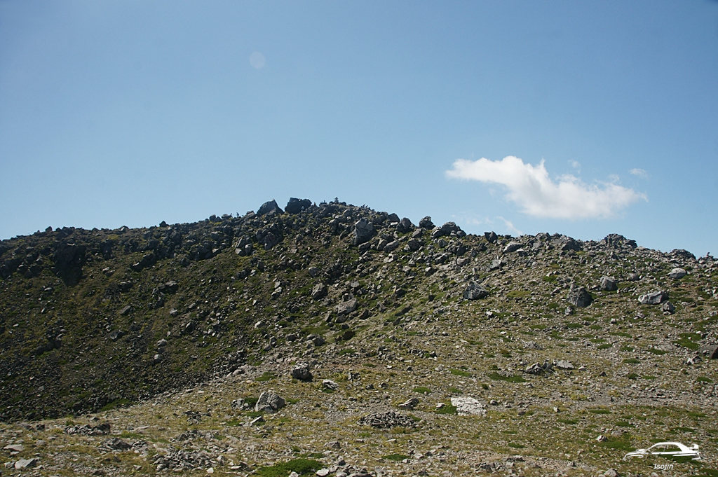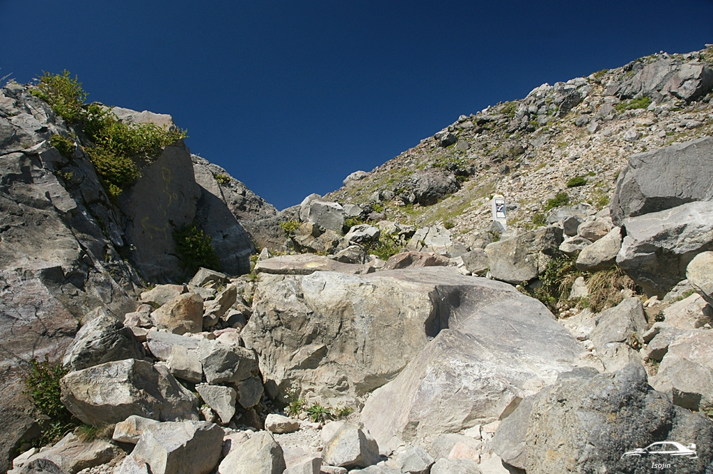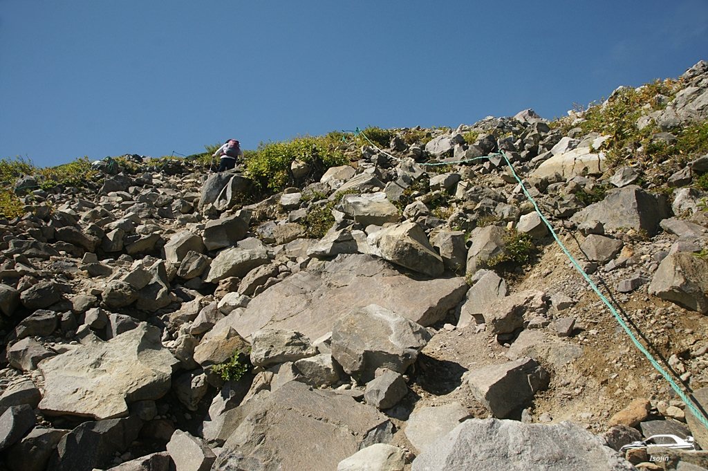 ごらんの通りのガレ場なので、全く日陰がありません。日焼け止めは必須。