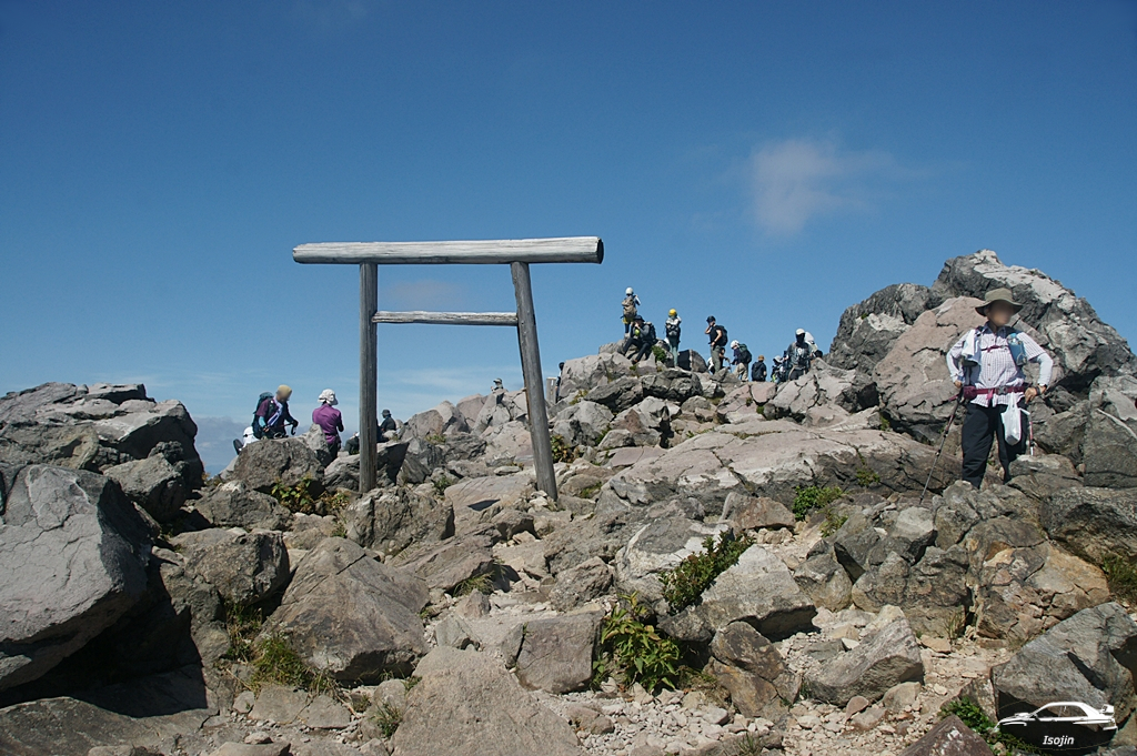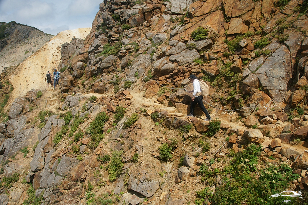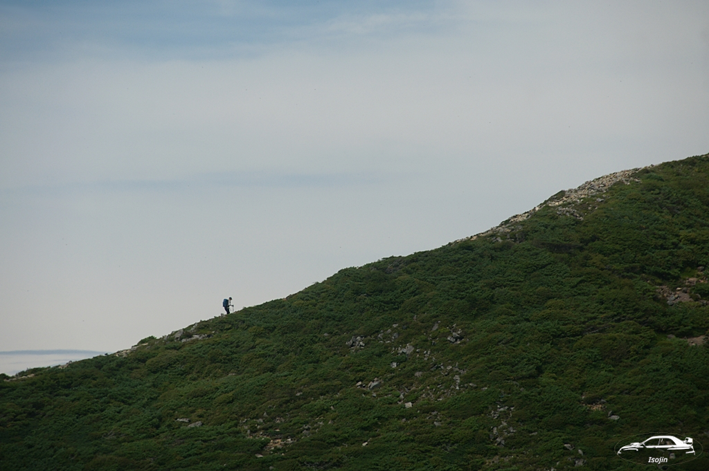 避難小屋を後にし、剣ヶ峰をまいて朝日岳へと向かいます。