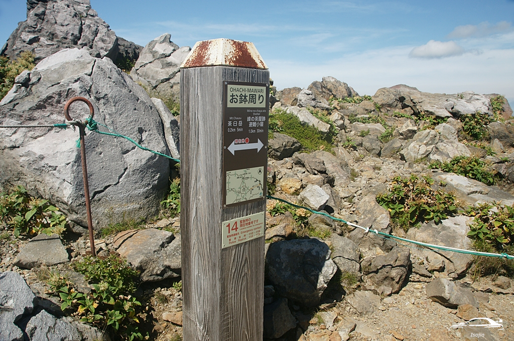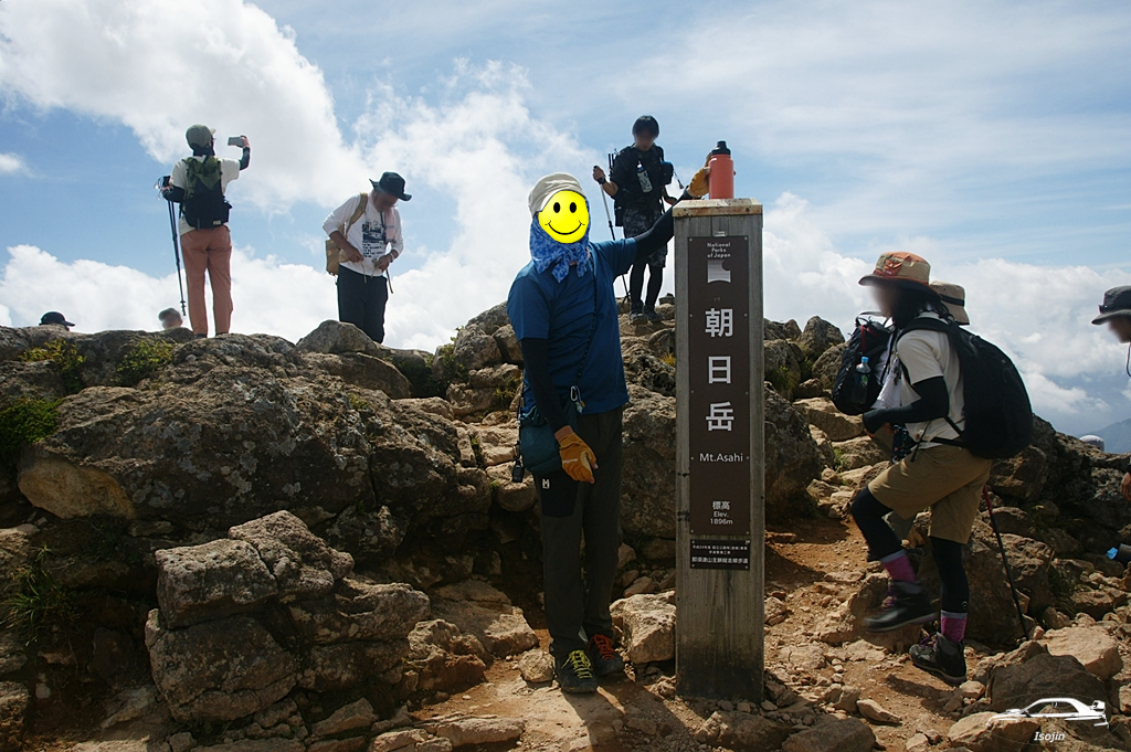 峰の茶屋跡避難小屋を過ぎて、朝日岳を見あげると、