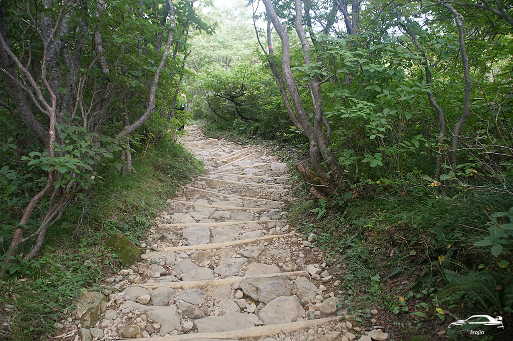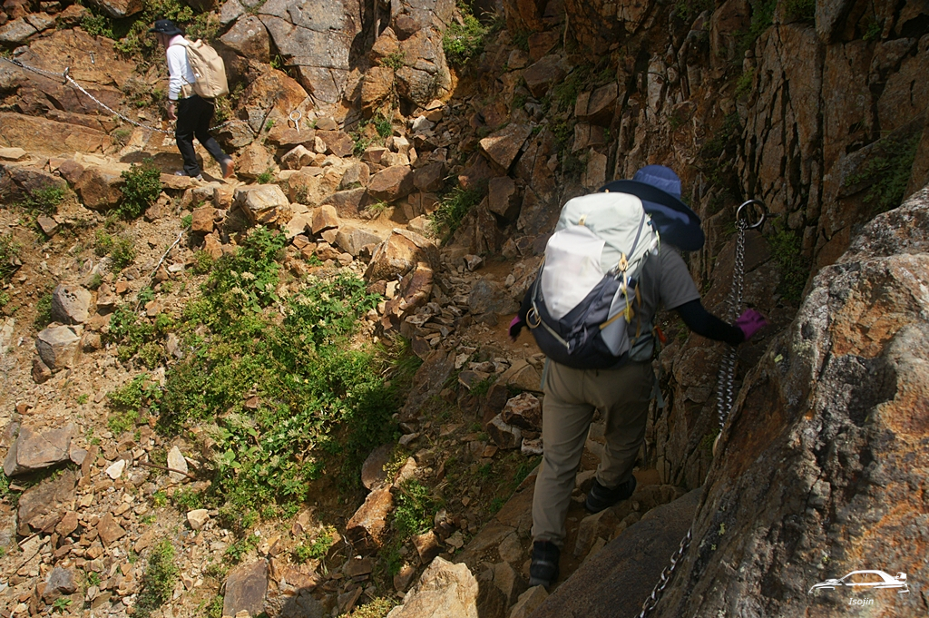 山頂付近は岩稜となっており、鎖場も設置されている。