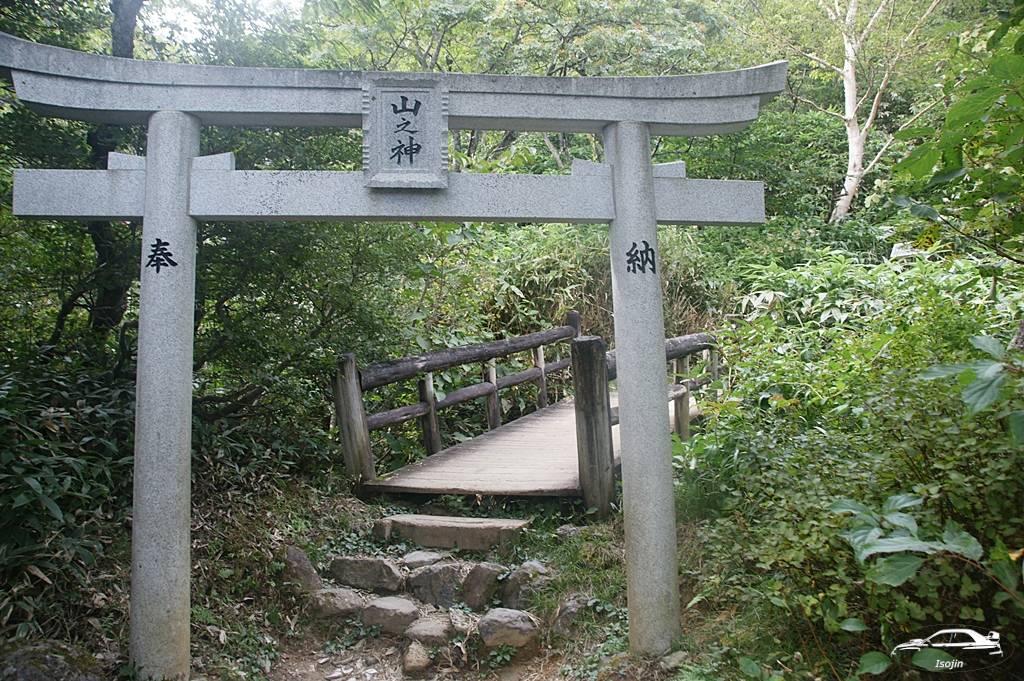 山頂の祠。お賽銭を入れ、脱帽、合掌礼拝。