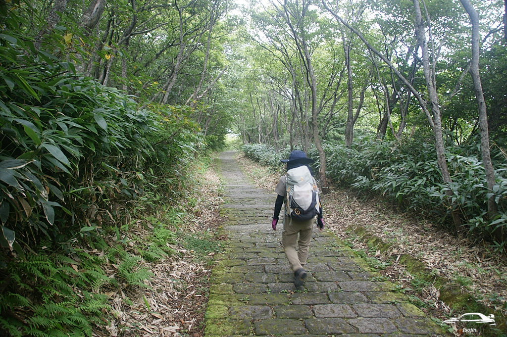 峠の茶屋駐車場を過ぎ、ロープウェイ駐車場へ向かうべく石畳の道を下ります。