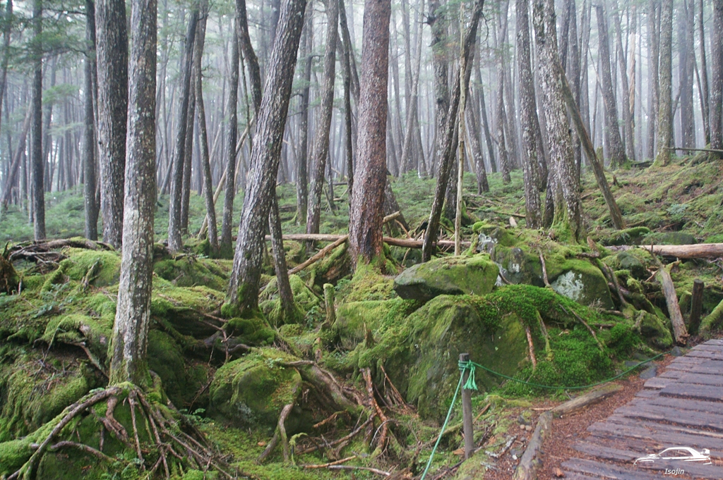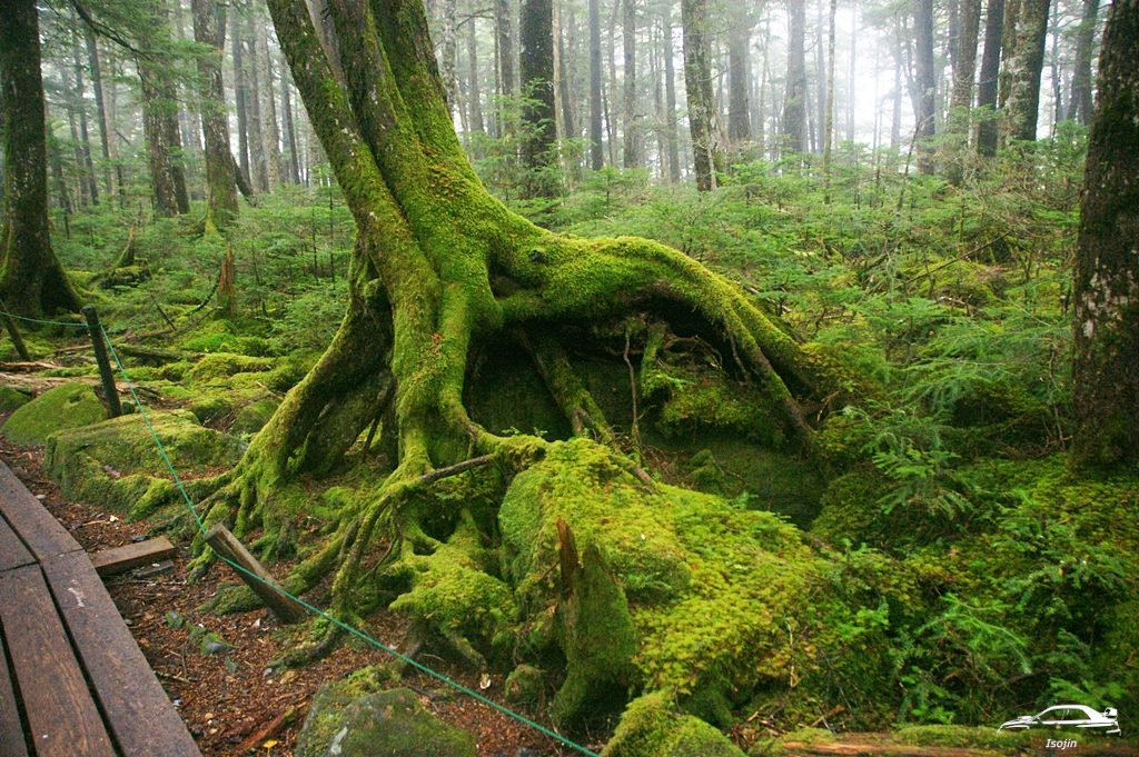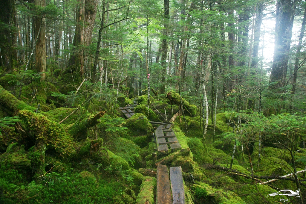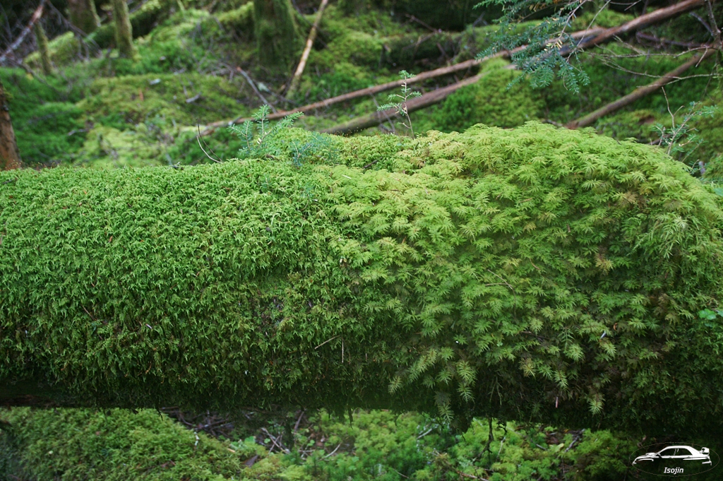 道脇の倒木は苔にびっしりと苔に覆われています。