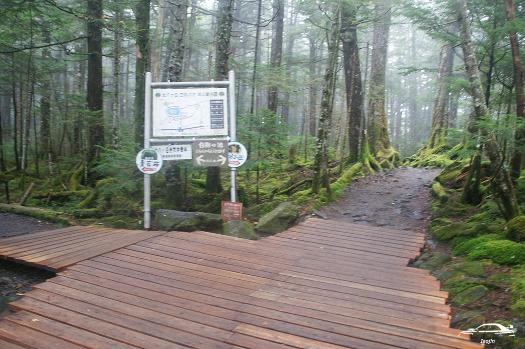 歩き始めて直ぐに、白駒分岐に到着。(写真ブレてます。チョットカメラの調子が悪い。)