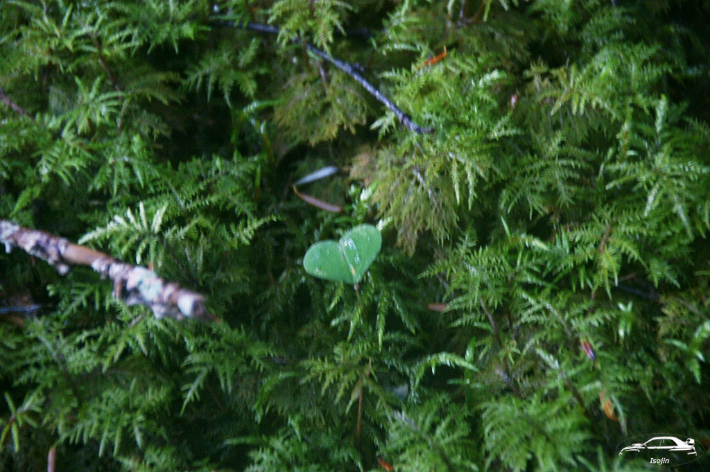 この倒木の苔は、真ん中で苔の種類が異なっています。