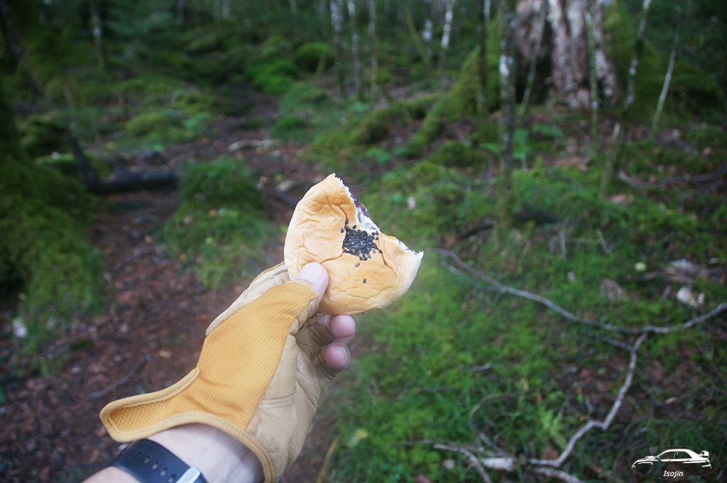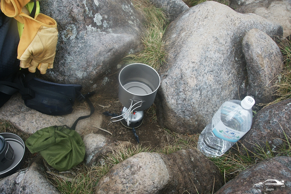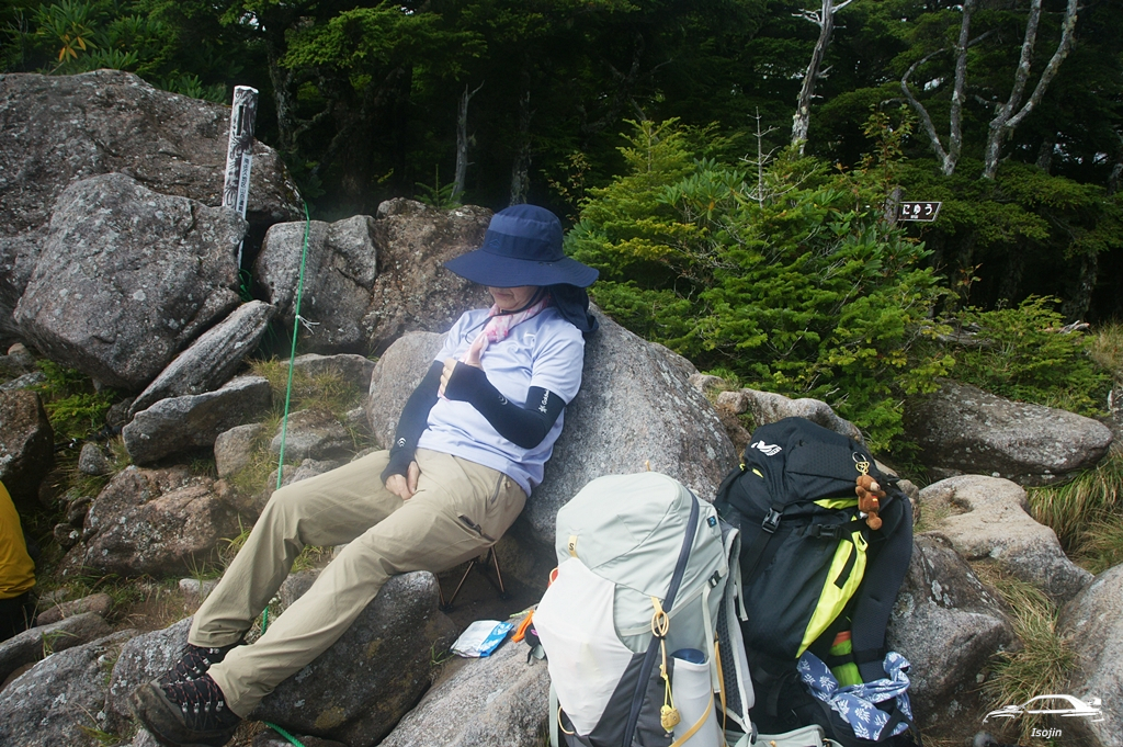 小雨も止み、少々暑くなって来たので、上着を脱ぎ小休止。