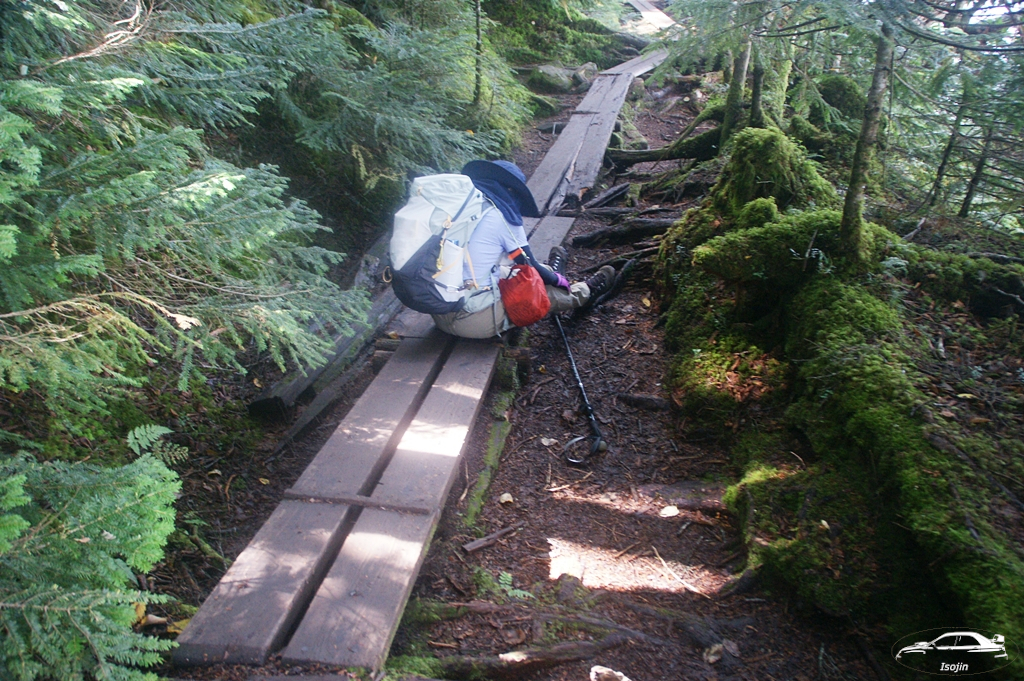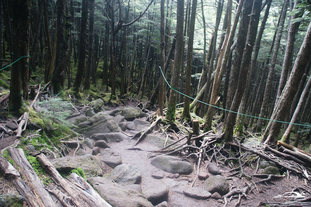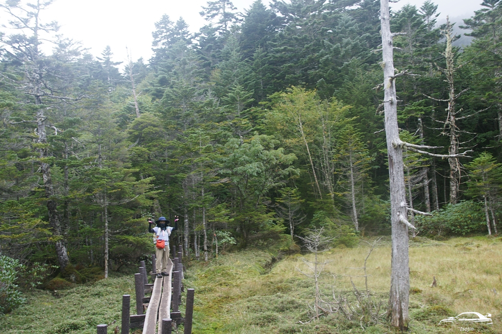 道を間違えている事に気がついていないので、少し荒れている木道をドンドン進みます。