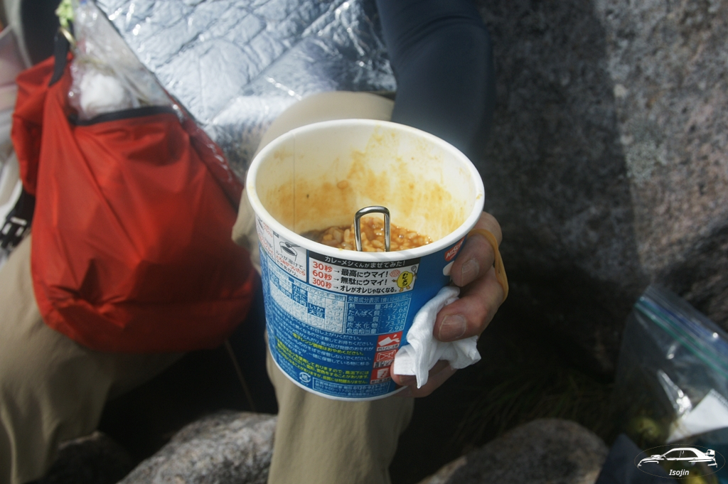 今回は、バーナーでお湯を沸かして、カレーメシ。