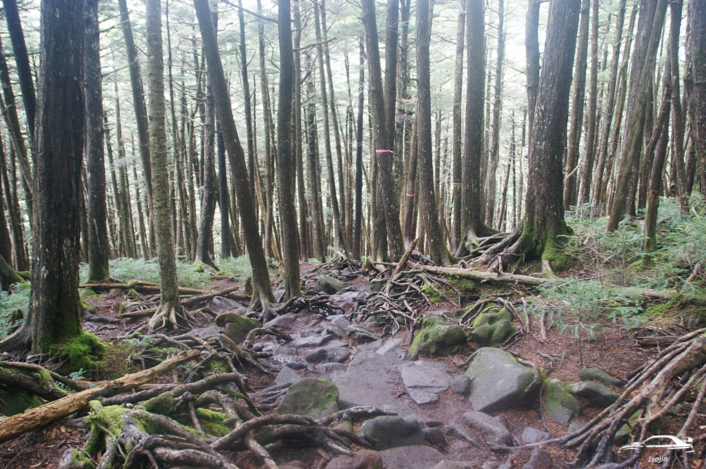 小雨、ガスガスのうえ、ずーっと樹林帯の中でしたので、サングラスだと暗すぎる・・・・