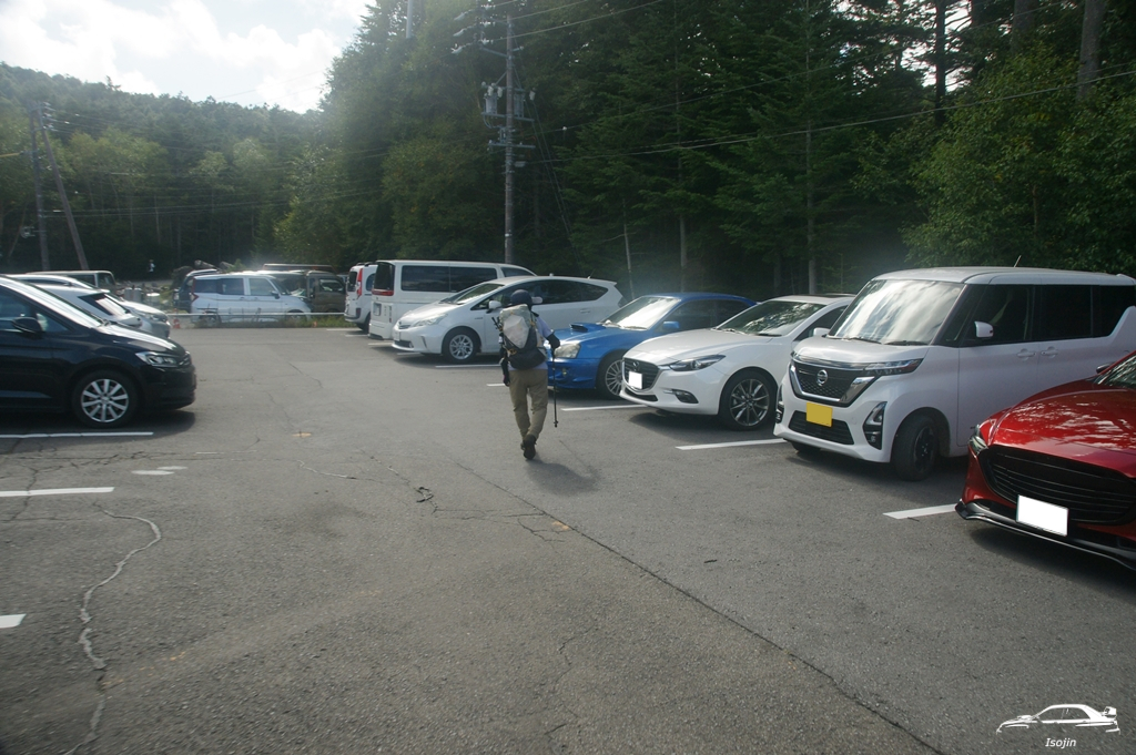 第一駐車場は、ほゞ満車2~3台しか開いていない。辛うじて舗装された第一駐車場へ停められました。