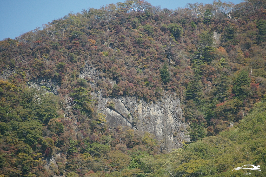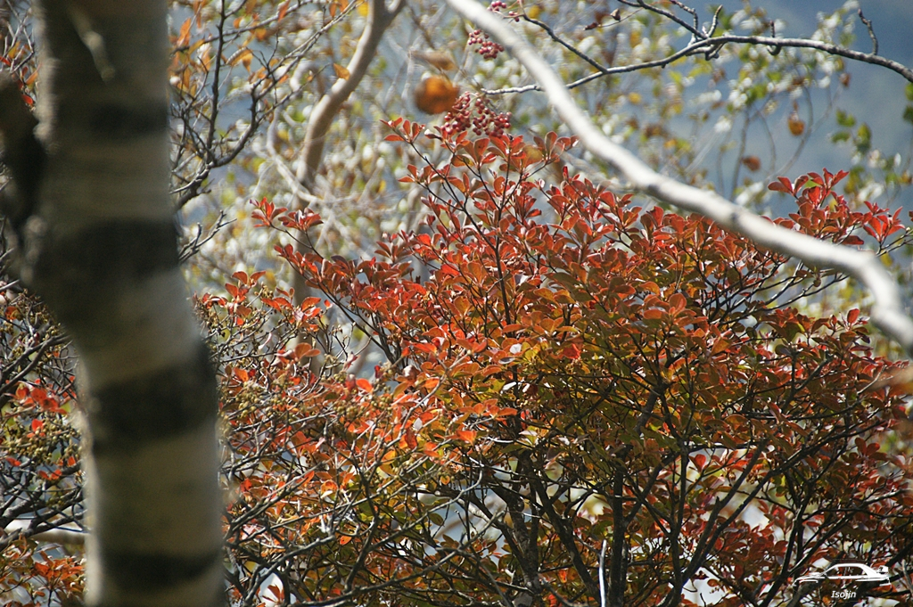 駒ケ岳の斜面に、少しだけ色づきを見つけました。
