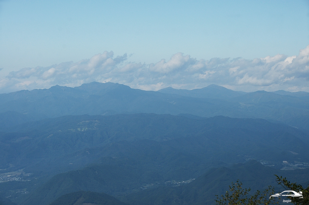 残念ながら、アンテナ山(地蔵岳)の左側に見えるはずの富士山は霞んでいて見えません。