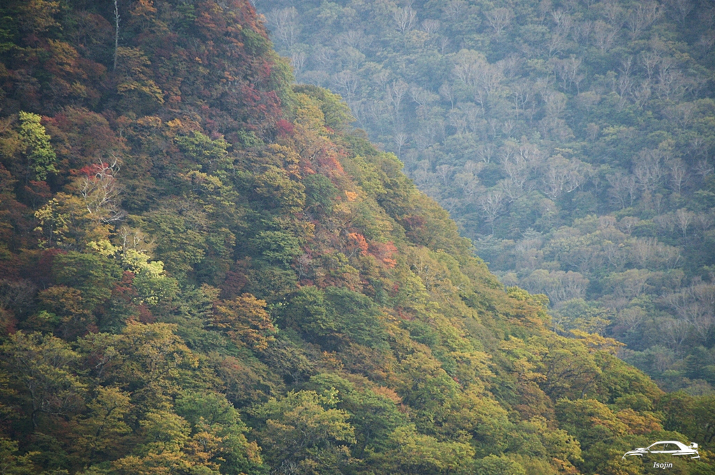 道幅が狭い所に、紅葉シーズンを向えて、バイク・車が多く通るので気を使いますね。
