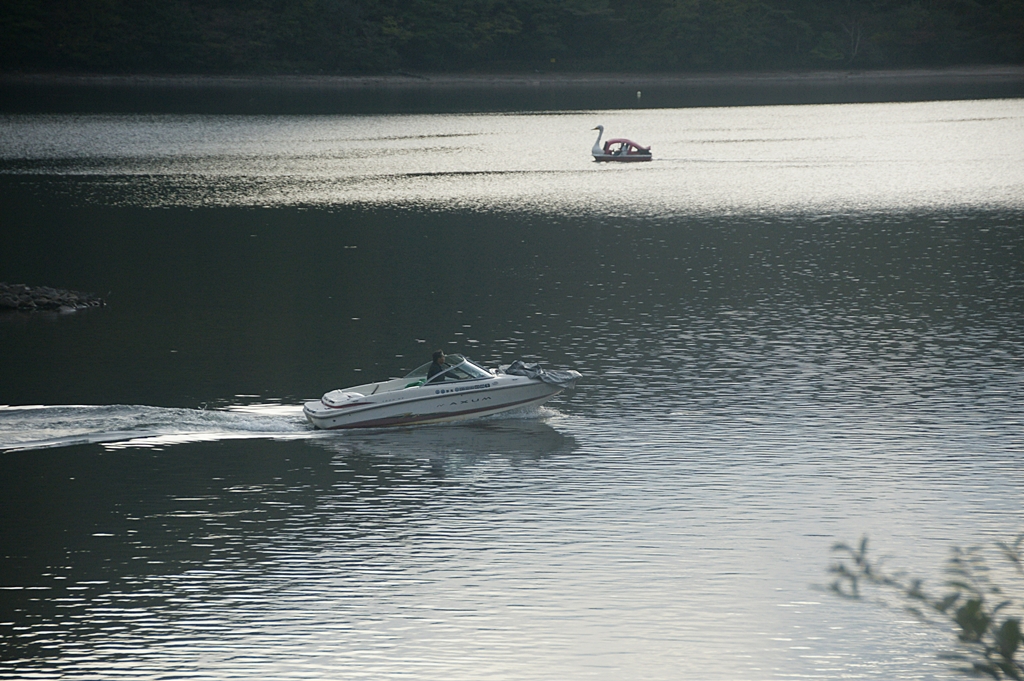 久しぶりに、モーターボートが湖上を走っているのを見た気がします。