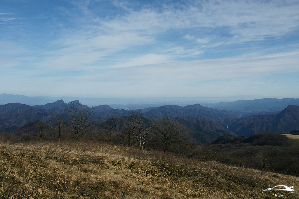 物見岩からの展望は最高で遠くは北アルプスや長野群馬の山々が見渡せる。