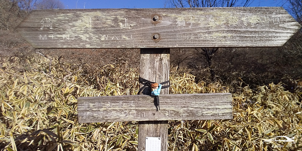 笹の原っぱの中腹、群馬県の看板前で暫し休憩。