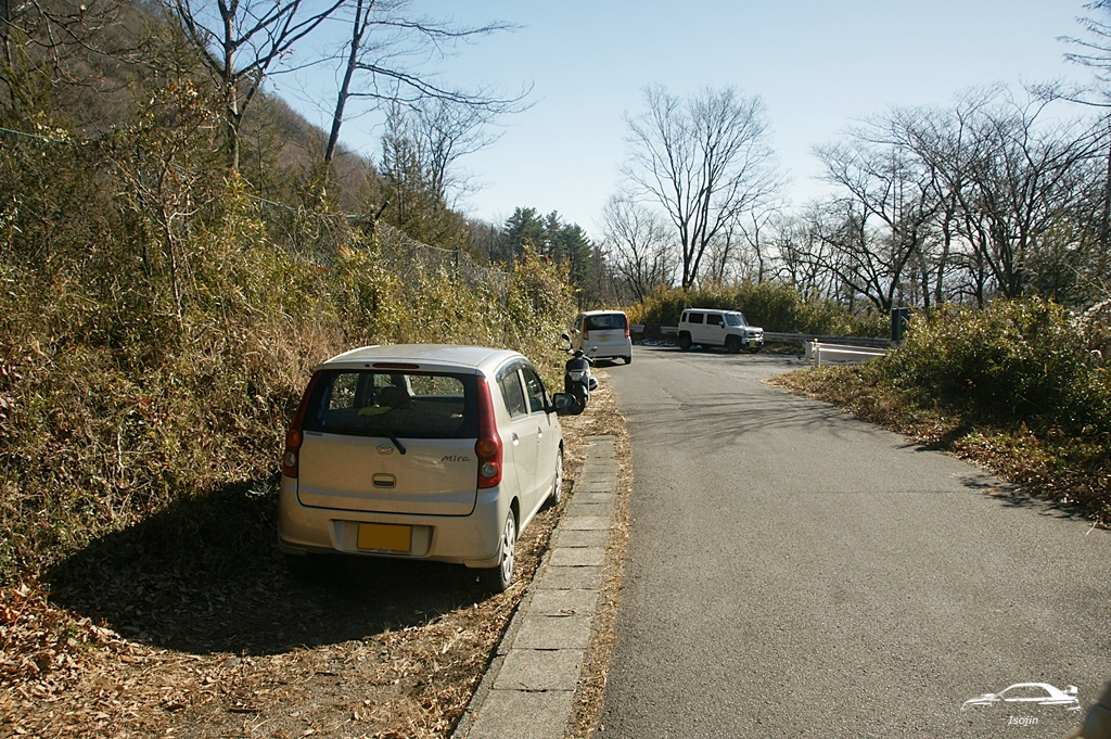 鍋割山登山口近くの林道わきに駐車。何台か停まっていますね。