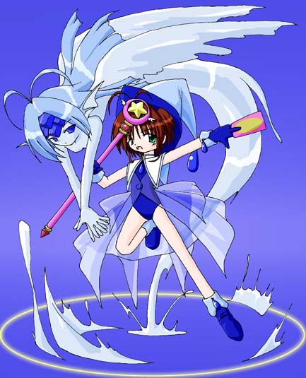 UP 2000/8/6 さつまいもむしさんからリクエスト頂き描く事になったさくらさんです。 依頼通りに夏っぽく青色系統になるようにがんばってみました。 腰まわりの半透明の布の部分は苦労しましたが、もうどうやってたのか覚えてないです〜。 背景手抜きです〜。あわわ。