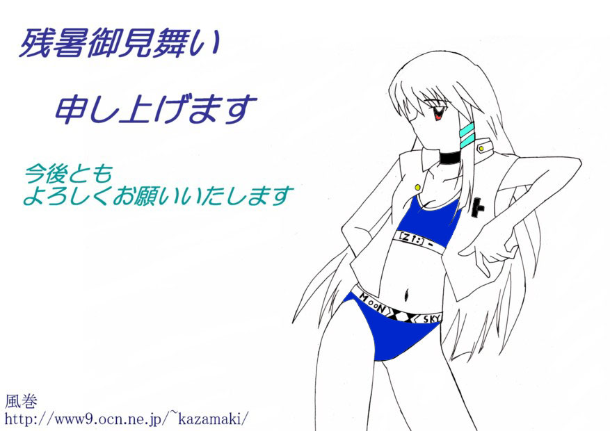 | 風巻煌氷さんより残暑見舞い クールな雰囲気が良いです〜。水着のデザインが何だか好きです。 |