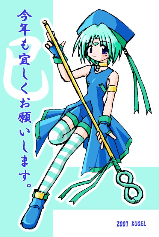 UP 2001/1/20 年賀状絵、バージョンUです。 実家から戻ってきた1/7日、メールをチェックすると沢山年賀状を頂いてました。 お返しをしなくてはと思い、急遽作成したCGです。 年賀状を下さった方へ、お返事として送らせていただきました。 来年は先にこっちから送りたいですね。