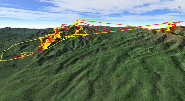スタート高度はΩ4のほうが100mほど高かったのですが、子持山に張り付いた高度はほとんど違いがありませんでした。今日は子持山全面の3つ目尾根頂上に取り付けたので比較的簡単に高度をかせげました。