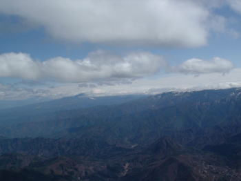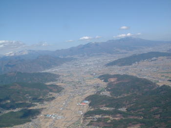 | 上空1400m見た上田平方面 | 美ヶ原方向には滝雲がかかっていた。 |