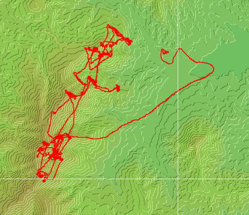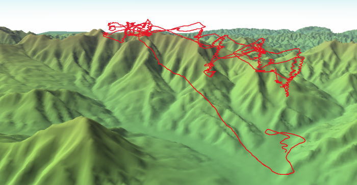 尾根線を流しながら+750mまで上げると雲底に付いてしまう。第2尾根から、第3尾根へ移動する。時々雲に付きながら南へ移動する。エリアになれてきたので、移動範囲が大きくなっていく感じがする。