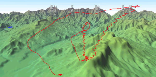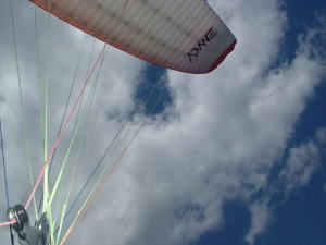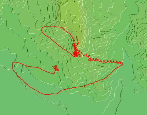 アップルポイント付近から北西の風にながされながら戸神岳上空で+1150まで上げてもう一度伊賀野へ移動開始。上空には発達の始まった雲があるが、吸い上げてはくれなかった。