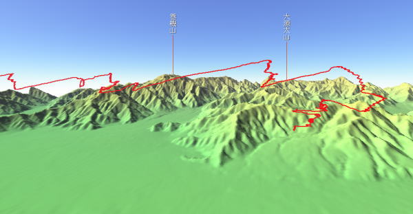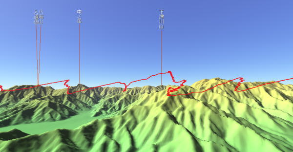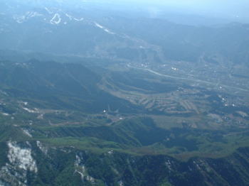 | 東尾根上空からランディング方向 | 東尾根上空から金城山・八海山方向 |