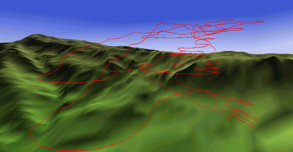 5km/s〜10km/s左の稜線上に移動して高度を稼ぐが、風が強くサーマルを追うと山裏へ流されてしまう。